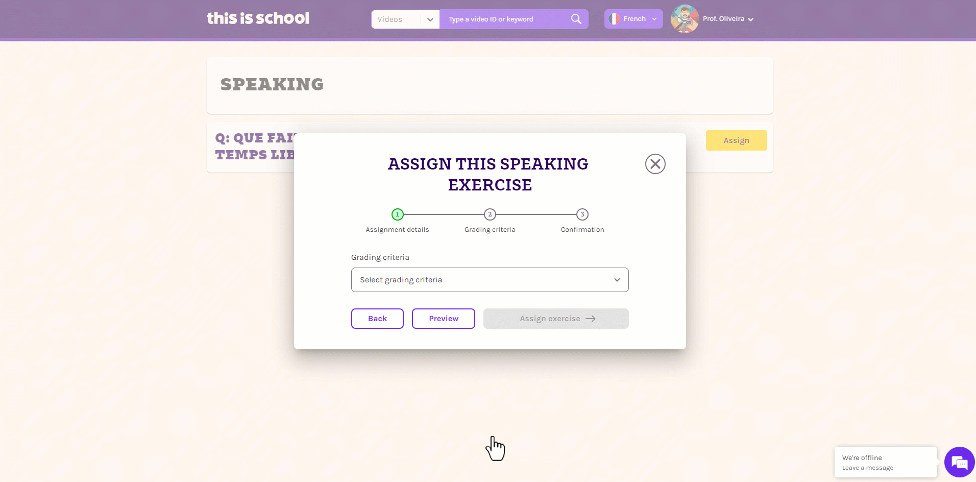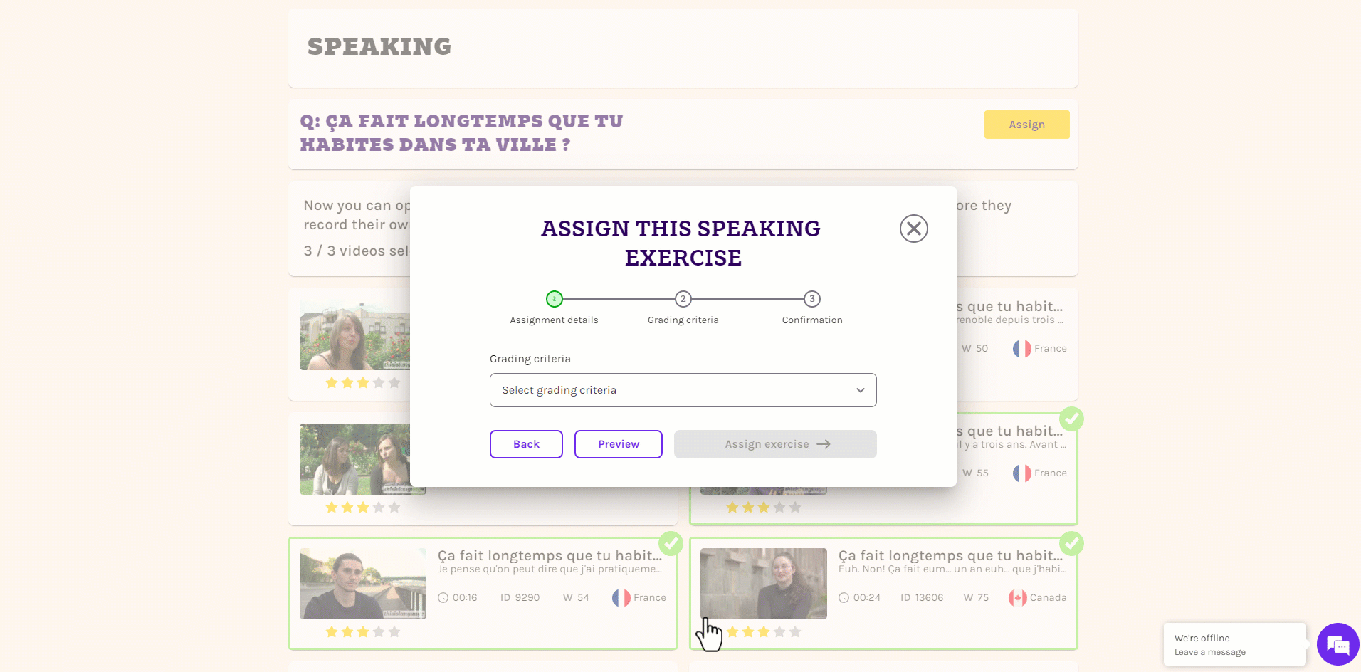 When you have selected the relevant grading set and made any desired changes, click Assign exercise.