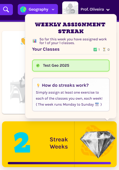 ✅ Assign work for each of the classes you own every week to build your streak.
